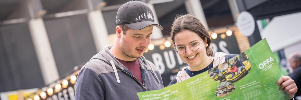 Hunde an der Leine sind an der OFFA auf dem Messegelände und in den Hallen erlaubt.