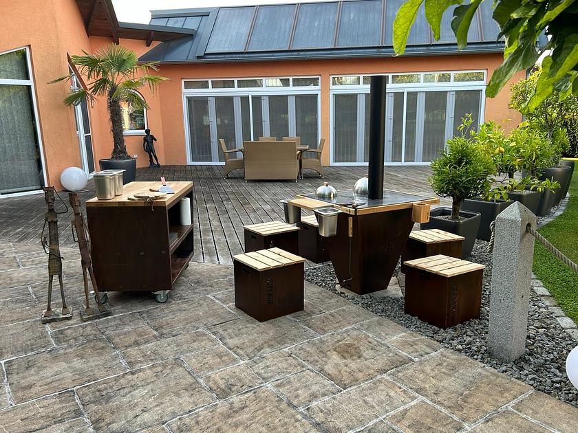 Unser modulares System ist so konzipiert das man eine Feuerschale und Platte auf verschiedenen Sockeln verwenden kann. So können mit wenigen Handgriffen individuell umgebaut werden.