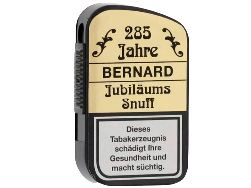 Der Bernard Jubiläums Snuff gehört zu dem klassischen Schnupftabak mit Menthol. Er ist ein frisch-würziger und milder Schnupftabak, welcher aus einer Mischung von kleingemahlenen, hellen und dunklen Tabaksorten besteht, welche für eine einfache Anwendung sorgen.