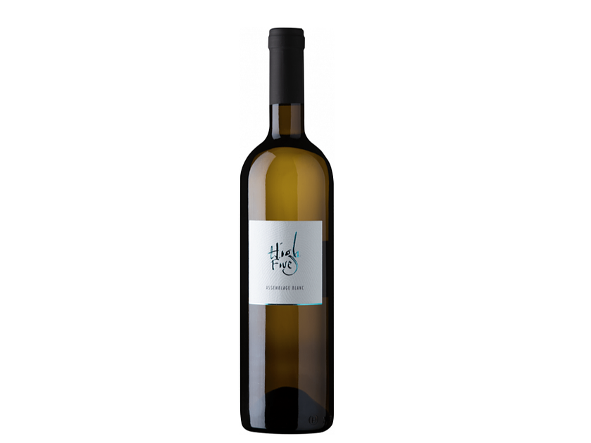Der High Five Blanc ist eine Assemblage aus Humagne Blanc, Heida, Petite Arvine, Chasselas und Johannisberg. Eine angenehme Note von Zitrusfrüchten und Blumen.