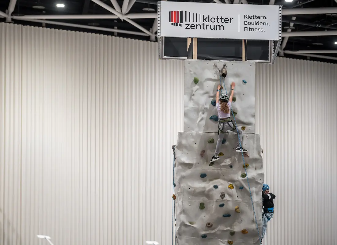 Am Stand des Kletterzentrums St. Gallen geht es hoch hinaus. In der St.Galler Kantonalbank Halle wartet ein bis zu acht Meter hoher Kletterturm, der Mut und Geschicklichkeit vereint. Unter fachkundiger Anleitung und professioneller Sicherung durch Profis wagen Klein und Gross erste Schritte in die Vertikale und erleben, was den Klettersport so faszinierend macht – der Moment, wenn man ganz oben angelangt ist.